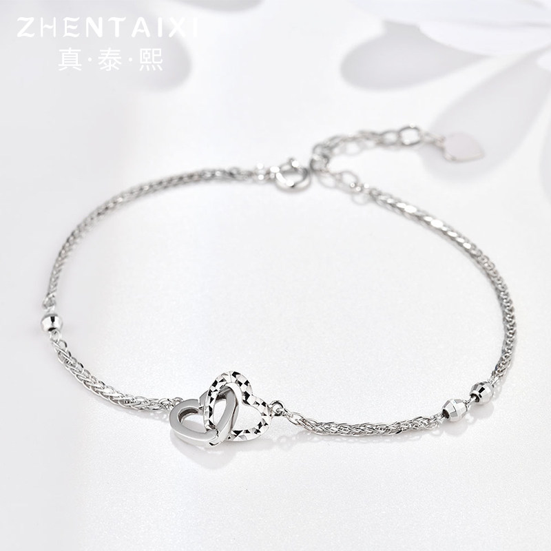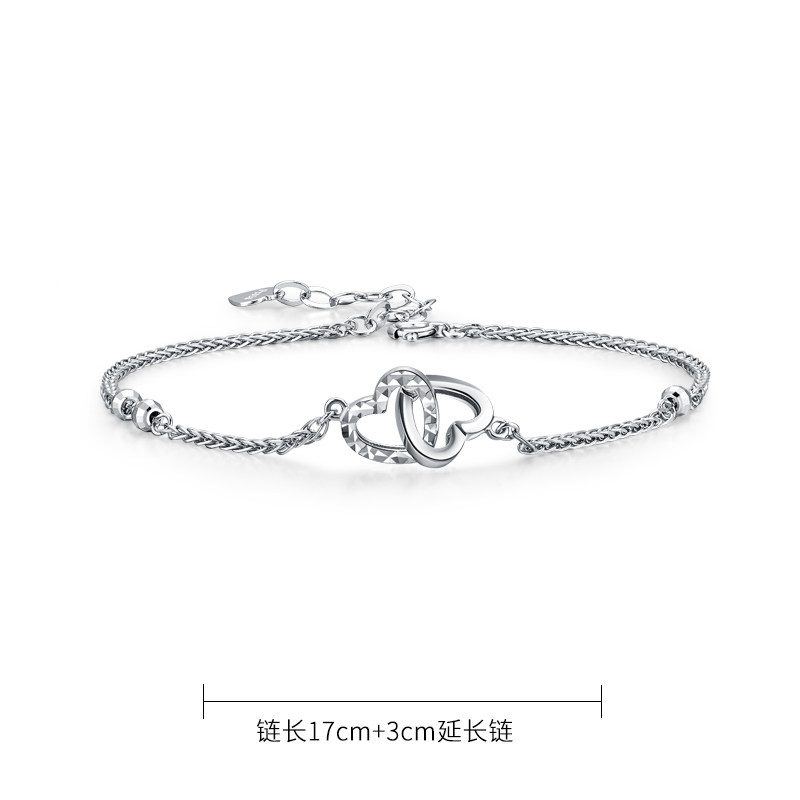Pt950 Platinum hand chain women's heart-shaped new simple white gold bracelet adjustable chain Lover girlfriend gift