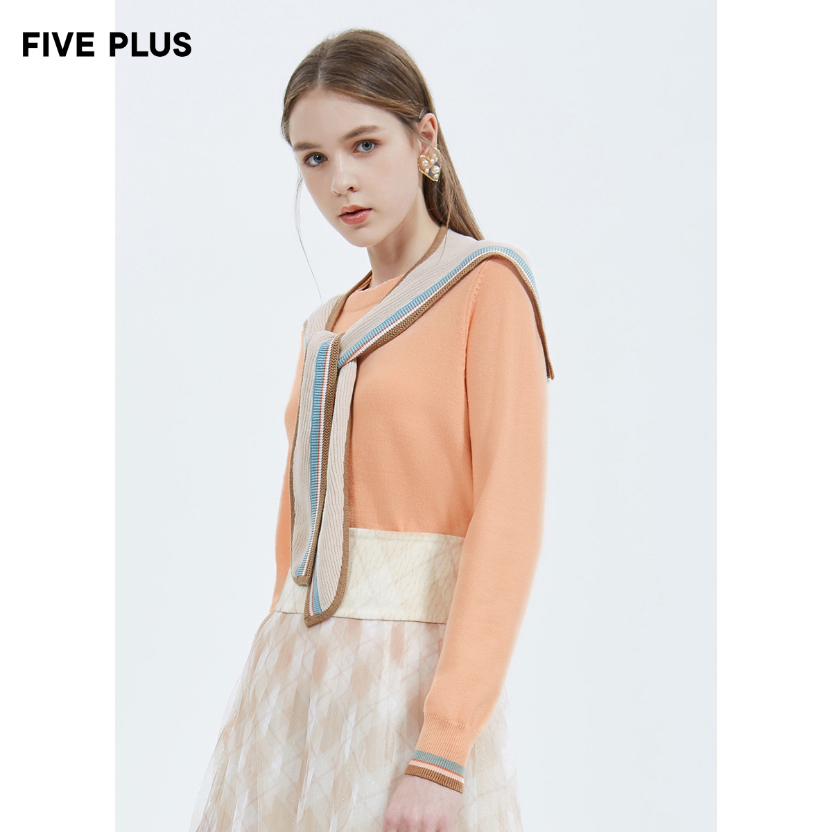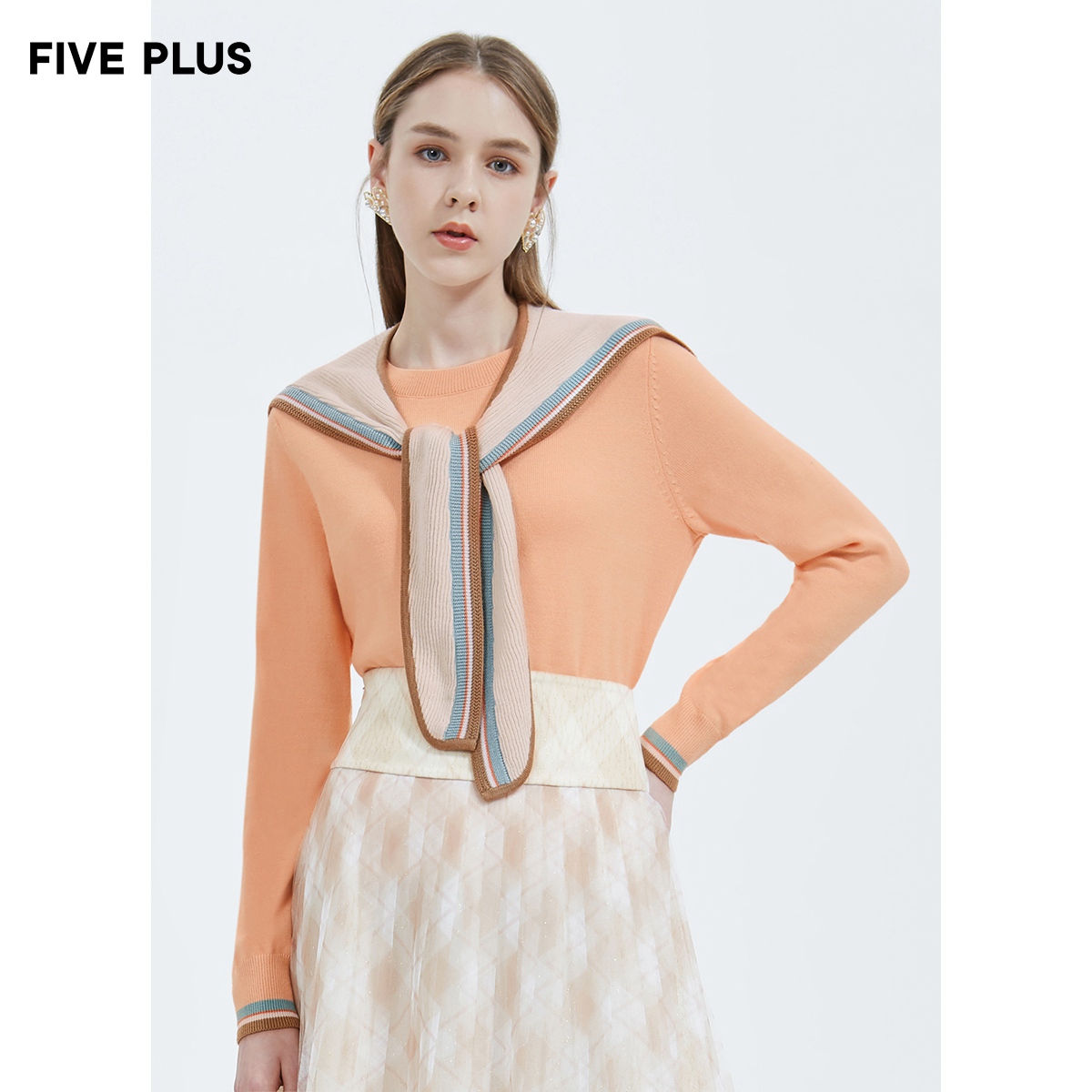 FIVE PLUS women's spring long-sleeved sweater Women's scarf Navy collar pullover contrast stripes