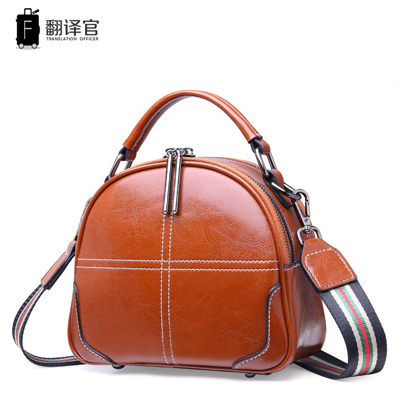 Translator cowhide women's bag shoulder messenger bag women's leather bag retro small round bag fashion trend all-match