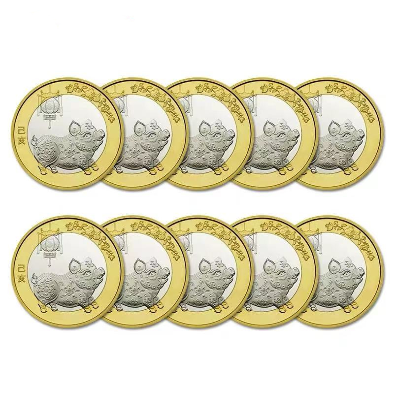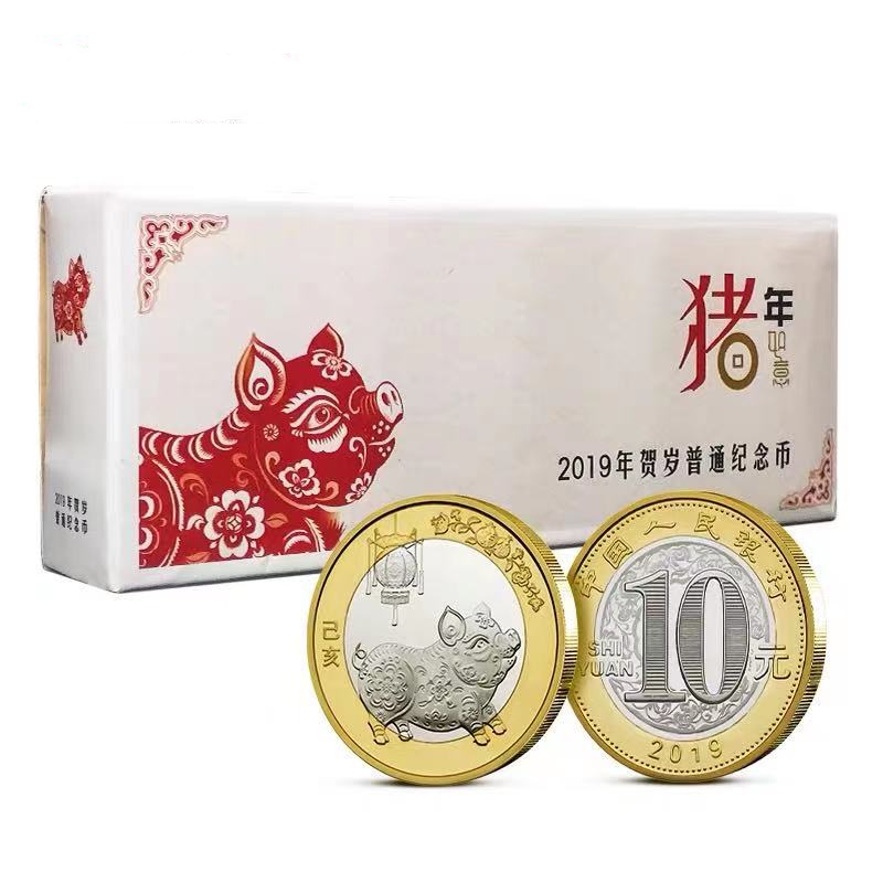 2019 zodiac pig second round zodiac pig year commemorative coin two pig 10 yuan face value pig new year coin 20 whole roll