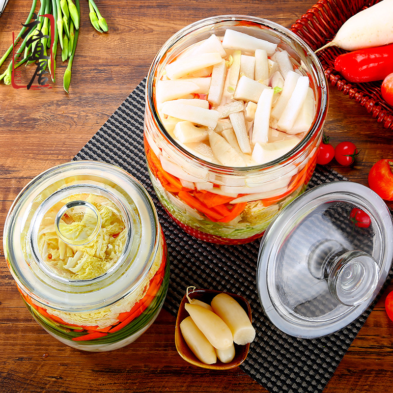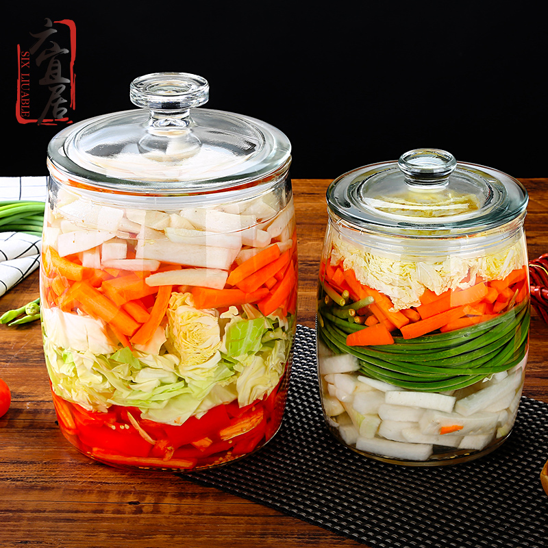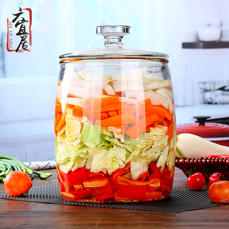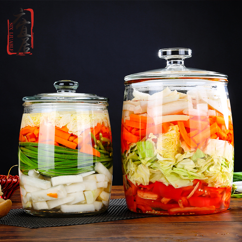 Six livable thick pickle glass sealed storage tank pickle cylinder household with cover pickled pickle glass cylinder