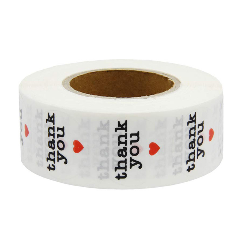 500-piece Roll Round Transparent Thank You Sticker with Red Heart Shaped Seal Label Gift Wrapping Stationery Sticker