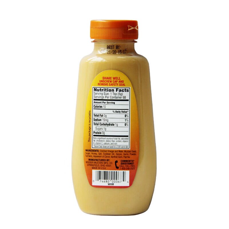 American Weber Honey Mustard Sauce 0 Fat Low-calorie Low-calorie Korean Fried Chicken Dip Yellow Mustard Sauce 340g