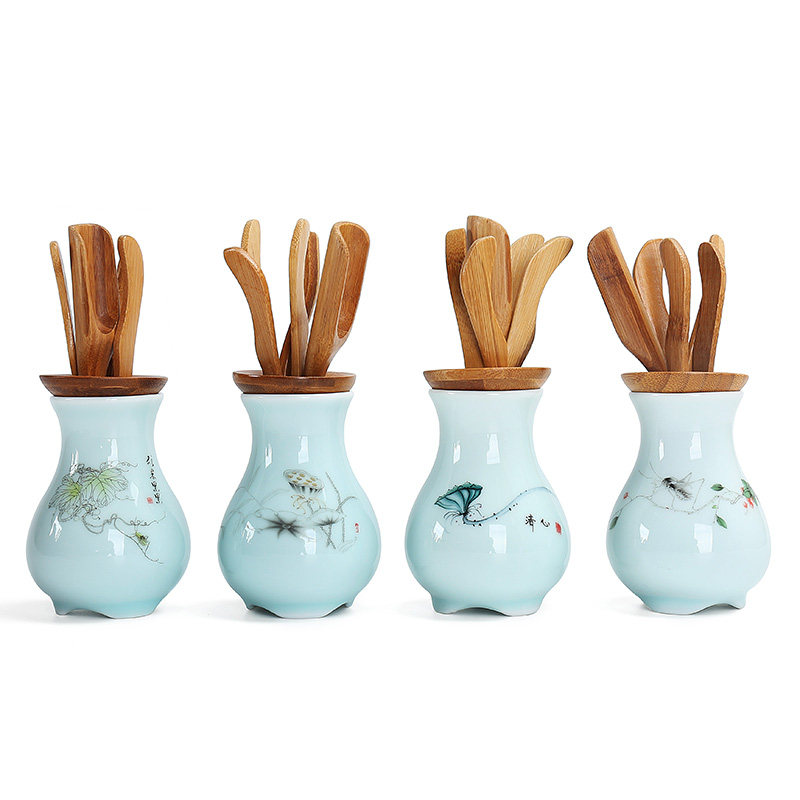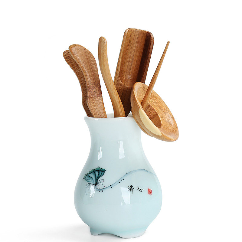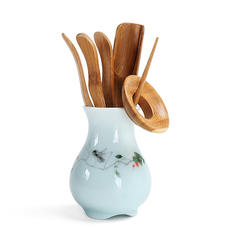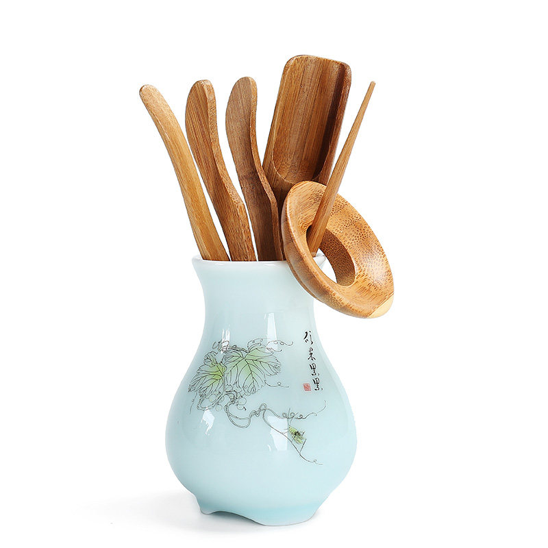 Tea ceremony six gentlemen set tea utensils wooden tea clip tea set kung fu combination ornaments real tea set accessories ceramics