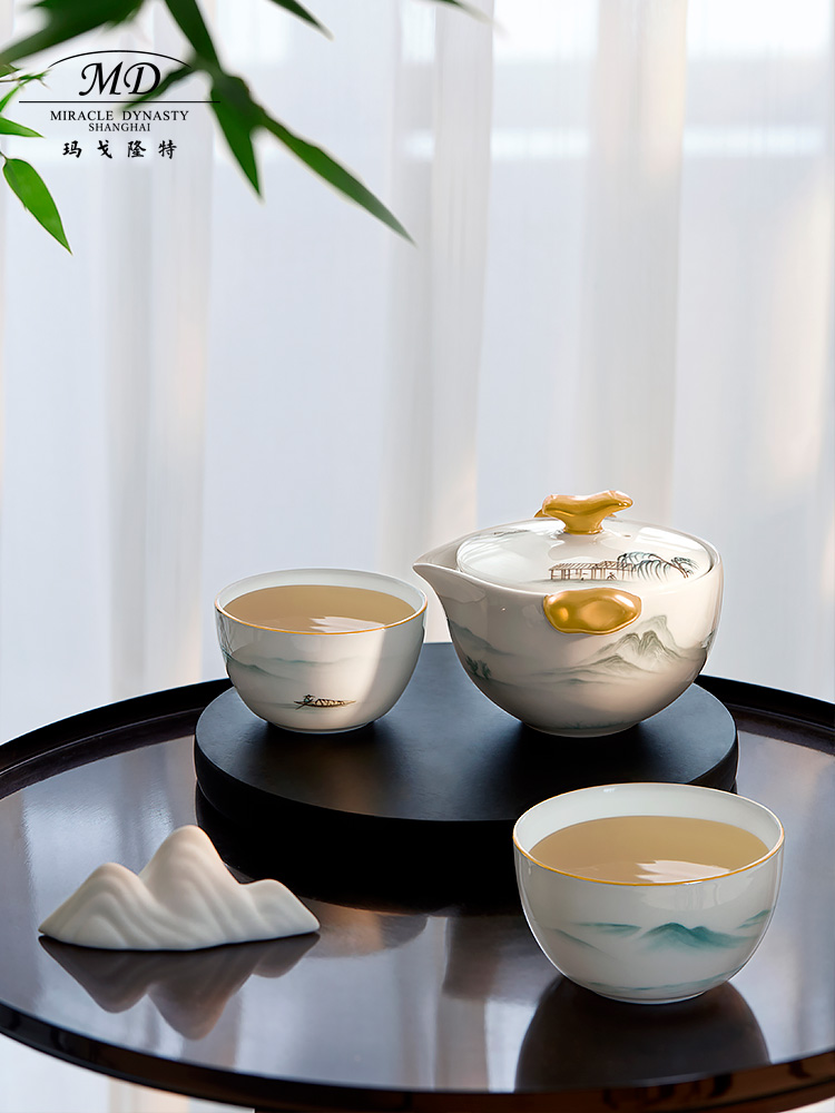 Margolonte Kung Fu set one pot two cups portable travel tea set bone china portable set home