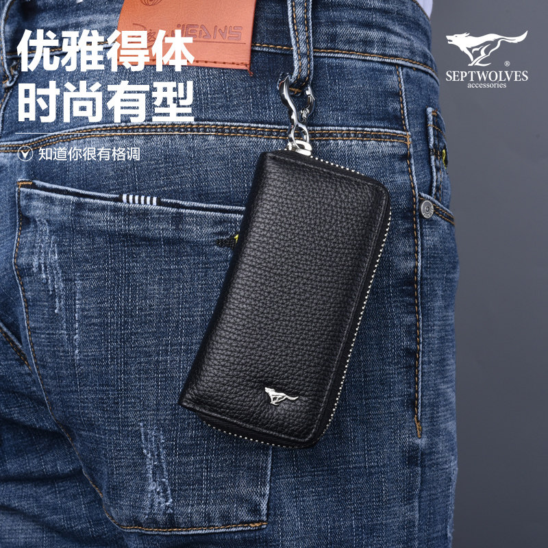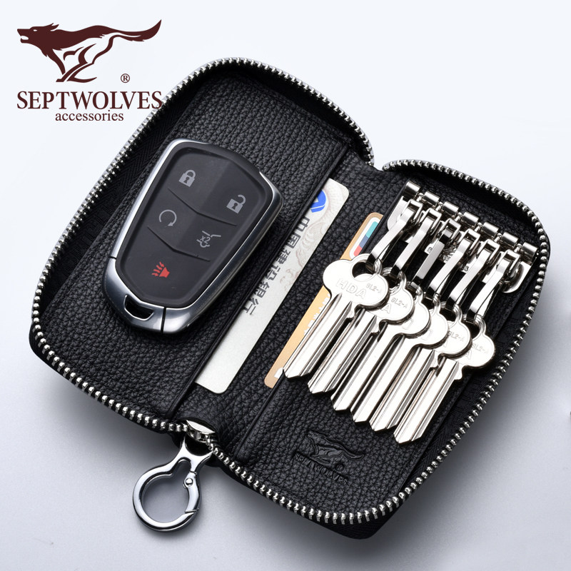 Seven wolves key bag men's car multifunction key bag universal female style soft leather card bag zero money bag set for home
