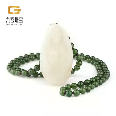 Jiugong Jewelry Xinjiang Hetian Jade seed sugar jade lotus flour suet and minced blue duck egg green bracelet safe buckle pendant