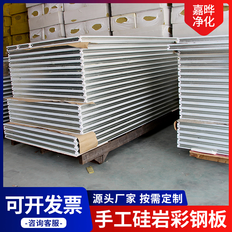 Hand silicon rock color steel plate fire insulation purified rock cotton plate composite sandwich plate fire waterproof panel ceiling