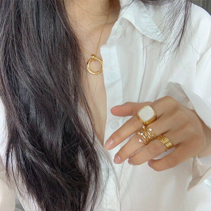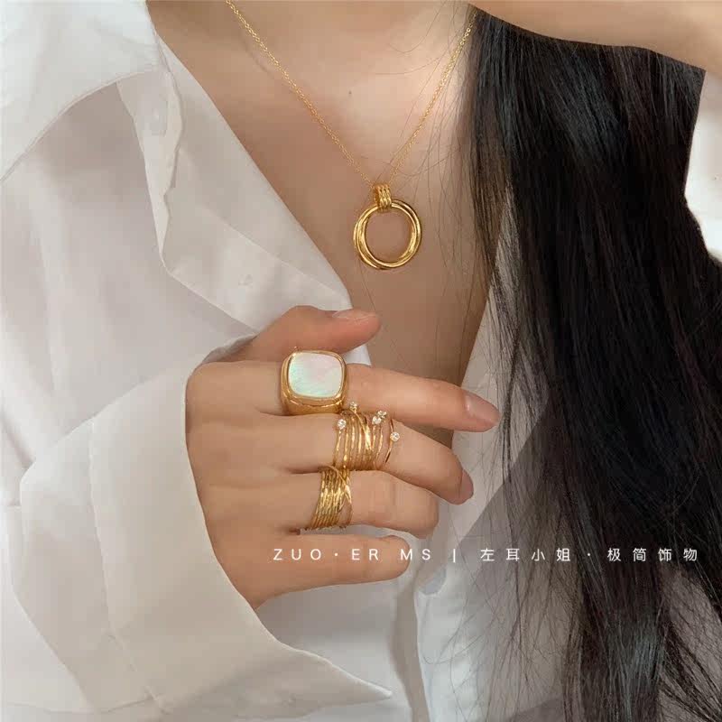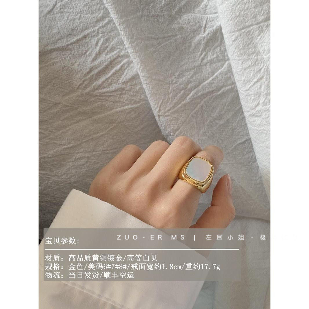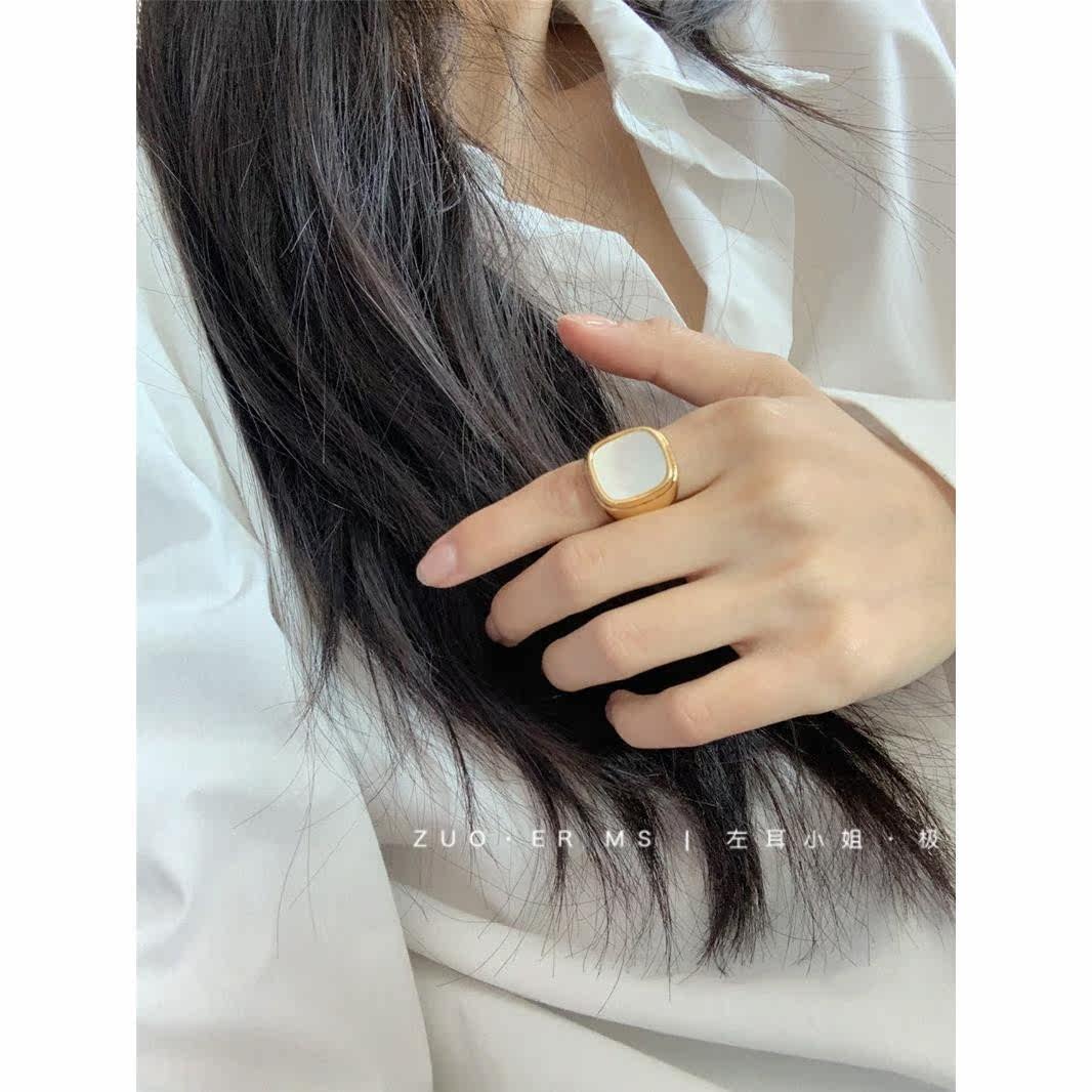 ins French cold style square ring HIDemi with the same niche high-end simple white mother-of-pearl gold-plated ring