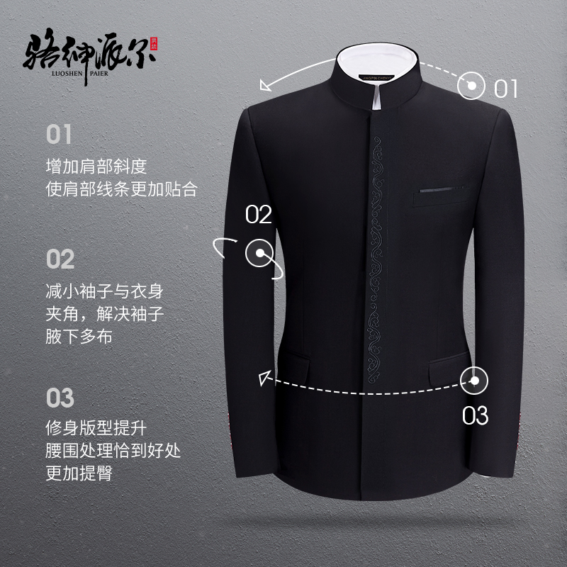 Luo Shenpaier tunic men's suit Chinese stand collar Chinese style youth dark placket slim men's Tang suit