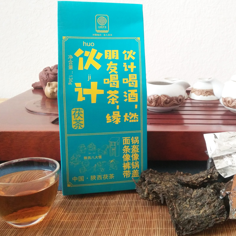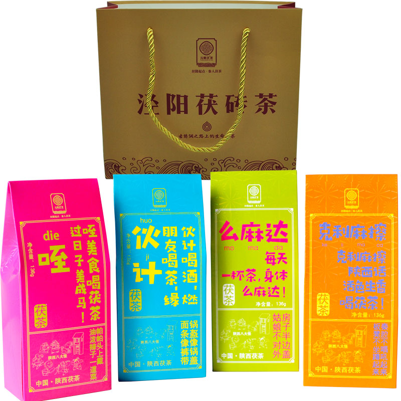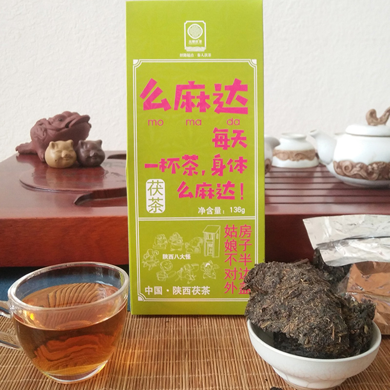 Yuan Shunshun Fu tea 136g boxes Shaanxi Jingyang Fu brick tea gold flower with a small lumpy tourist attraction
