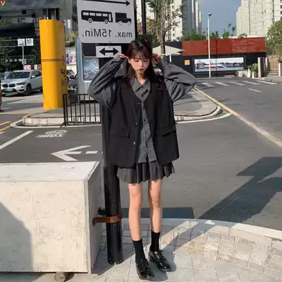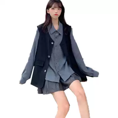 Black Vest Gray Shirt Gray Skirt