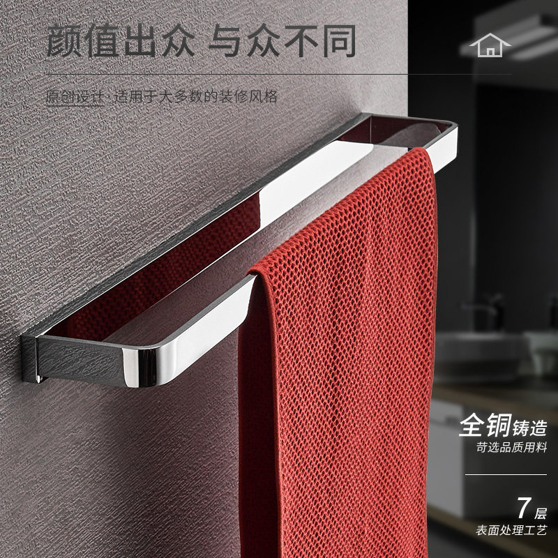 Eurostyle towel rod full copper solid thickened single-pole wool towel rack toilet perforated shelf bathroom hardware pendant-Taobao