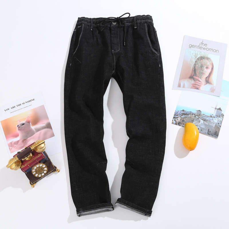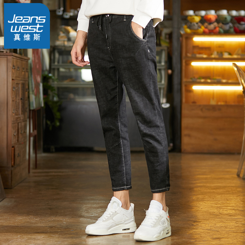 Zhen Weis jeans men's spring and Autumn tide brand Korean version of youth casual elastic drawstring small feet nine-point pants
