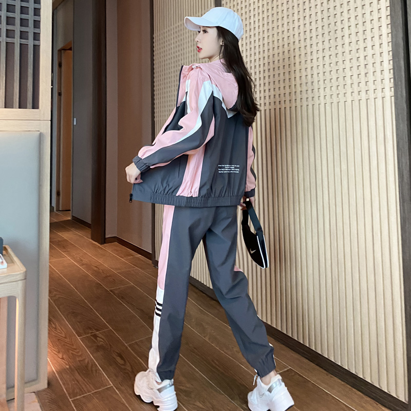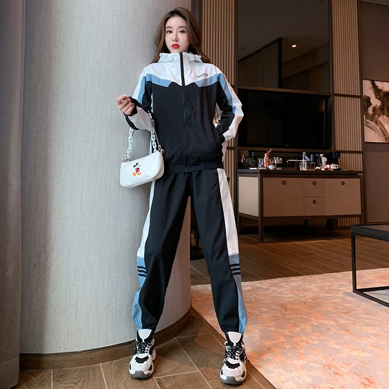 2022 Spring Autumn New Sports Suit Women's Tide Cards Fashion Loose Middle School Children's Clothing Casual Two-piece Plus Suede
