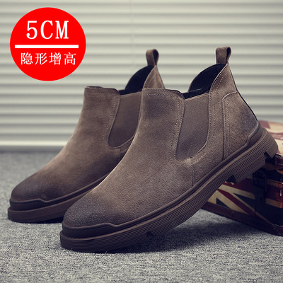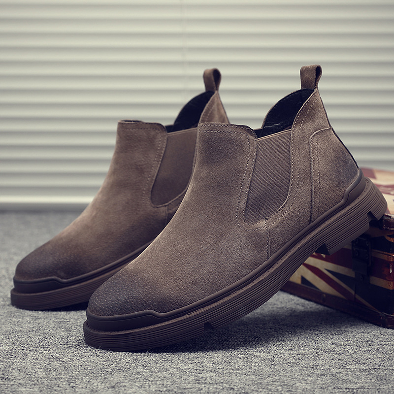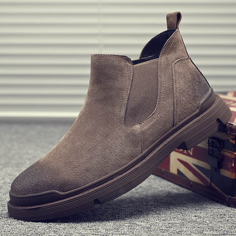 Mullinsen Chelsea short boots tooling tide lazy one pedal Martin boots leather British men's shoes high tube height