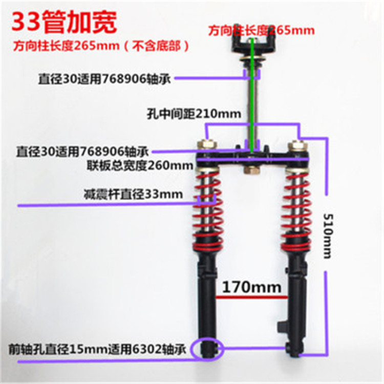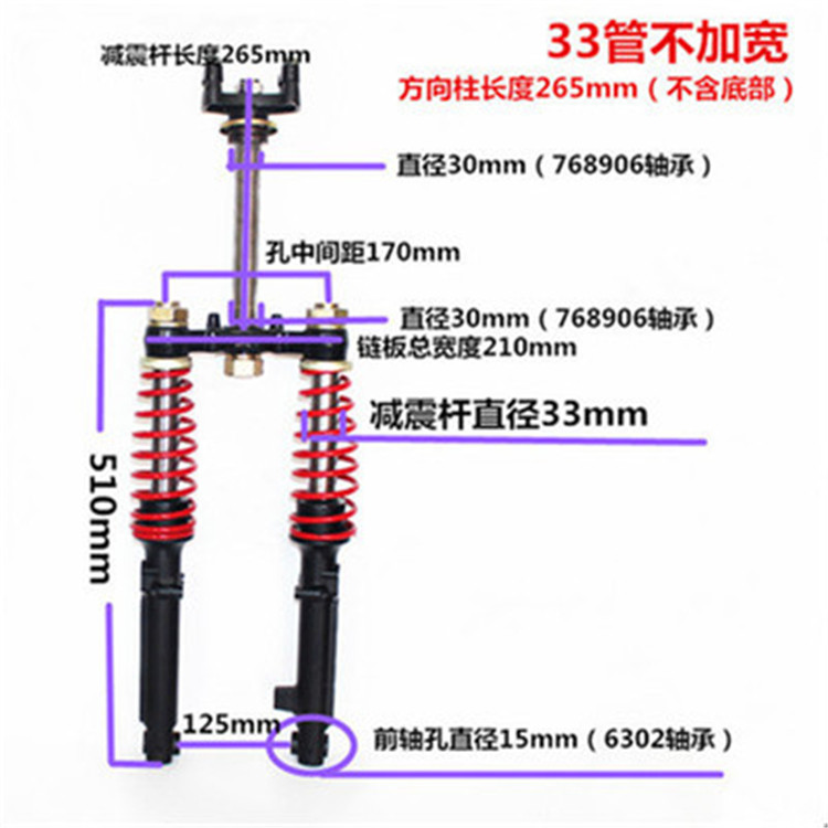 33 thick and wide front shock absorber assembly (without tires) 33 thick and narrow front shock absorber assembly (without tires) 33 thick and narrow shock absorbers with 350-10 tires 33 thick and wide shock absorbers with 400-12