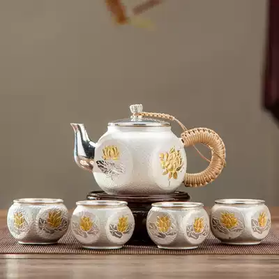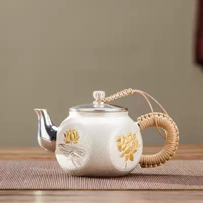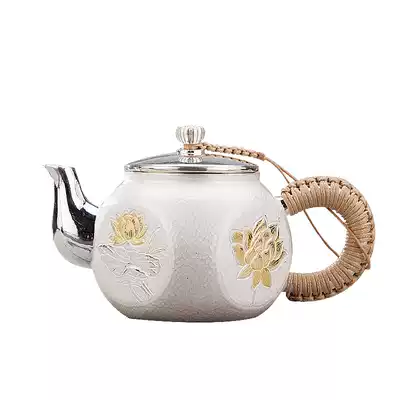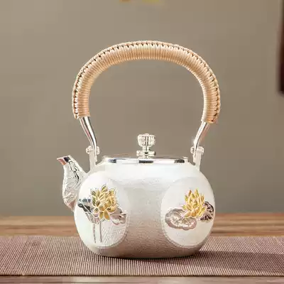 Hammer silver pot sterling silver 999 kettle home kung fu foot silver tea set Yunnan pure handmade silver teapot large capacity