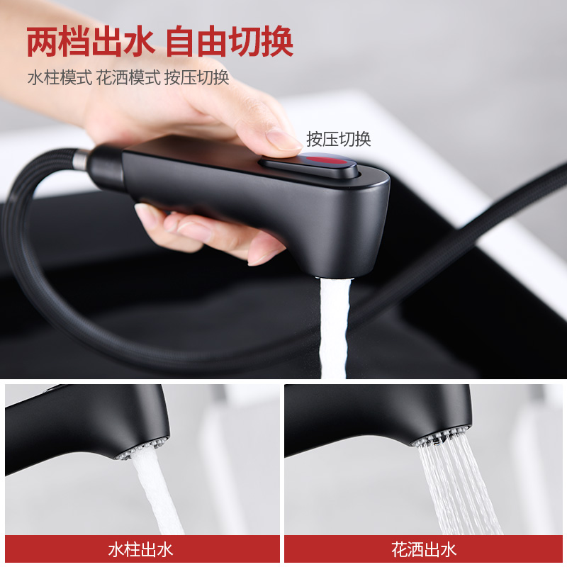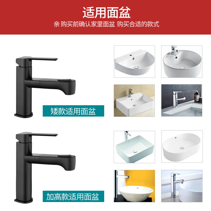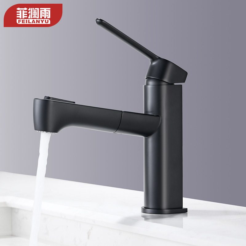 Powder room cold and hot water faucet washbasin single-hole pull-out basin washbasin countertop basin Nordic black household