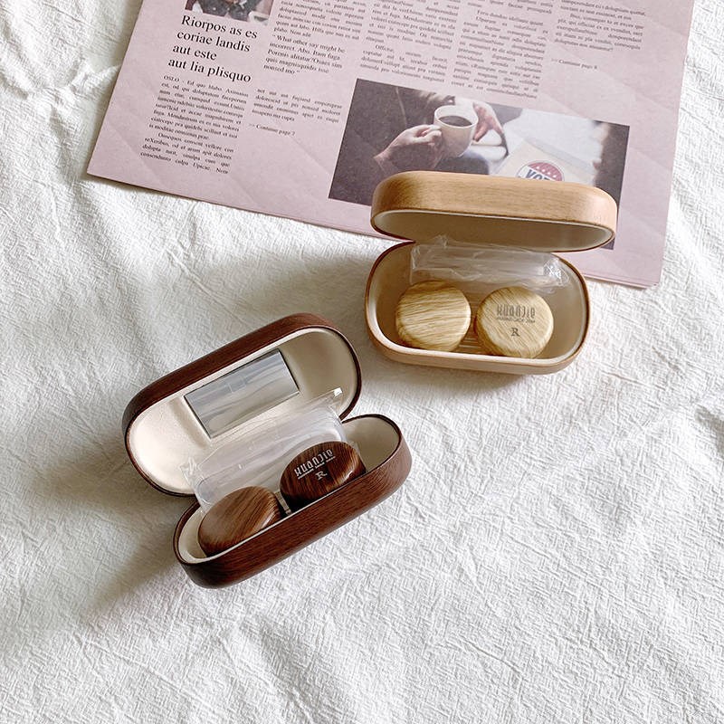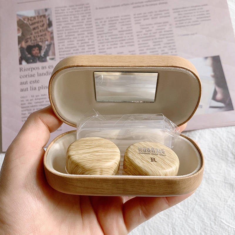 Couple Contact Lens Box Wood Mepupil Box Beauty Pupil Box Ins High-end Portable with mirror partner box