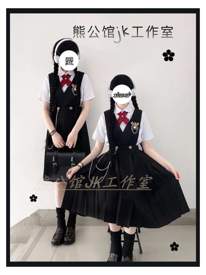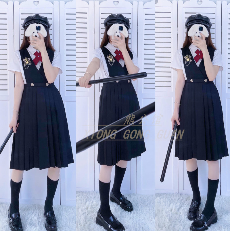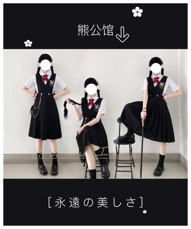 Black Breast Milk Dress Black Skirt Long Sleeve Shirt Flat Corner Collar Knots Black Dress Short Sleeve Shirt Red Cross Collar Knot Send Small Things Insignia Name Zal Tie Triple