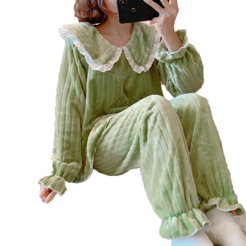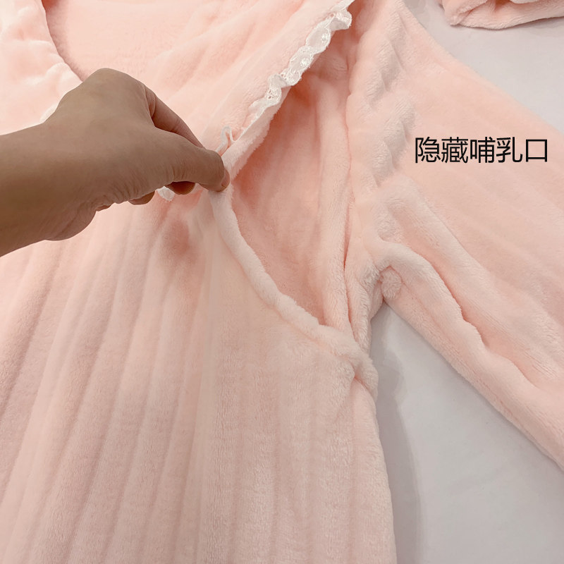 Pregnant women's pajamas women's autumn and winter flannel confinement clothes plus velvet thickening nursing coral velvet postpartum pregnancy home clothes