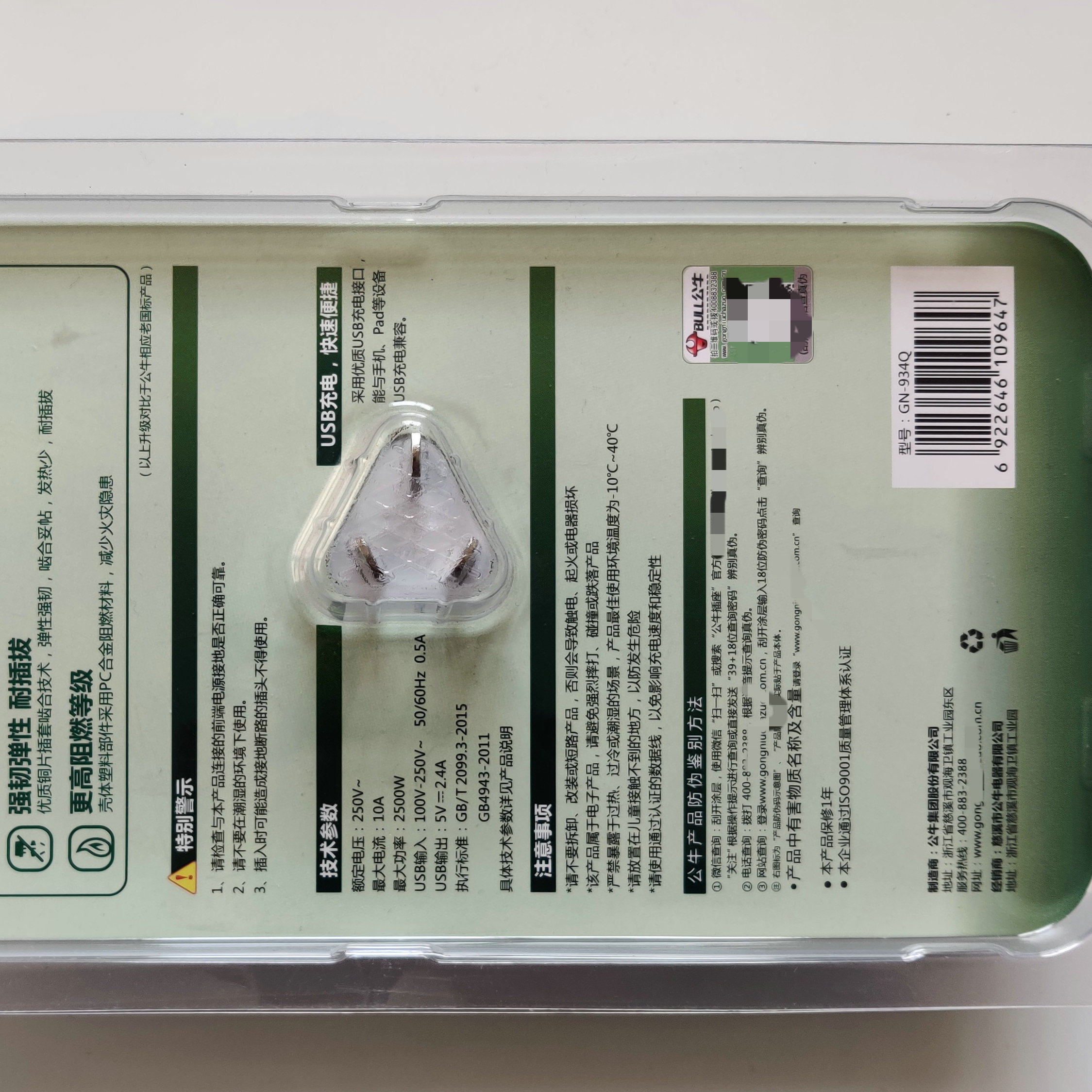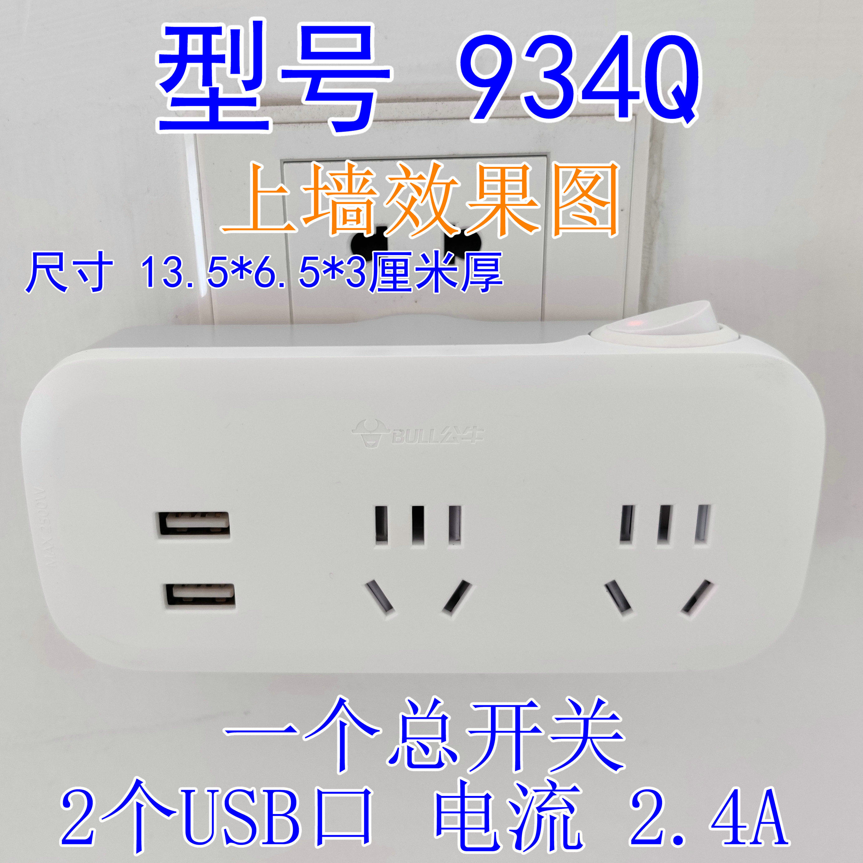 Bull wall socket GN-934Q home one to two with USB adapter multi-function mobile phone charging