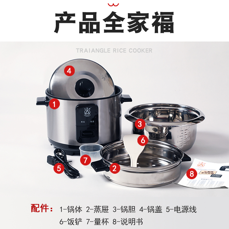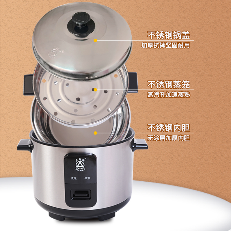 Triangle Cards Electric Rice Cooker Old Home Large Capacity 2 Liters 6 People Multifunction Stainless Steel Small Electronic Pot Cooking Double