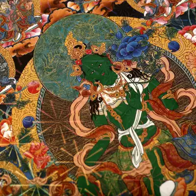 Twenty-one female thangka decorative painting Buddha statue hanging painting wall painting four-armed viewing sound yellow wealth god photo frame painting mural painting