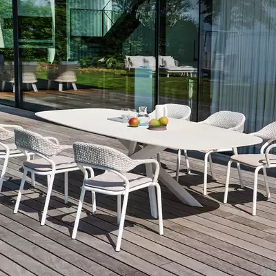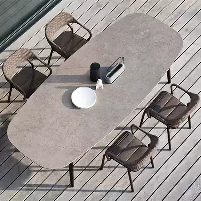 High-end imported rock board outdoor tables and chairs Villa courtyard open-air leisure dining tables and chairs combination indoor and outdoor household tables