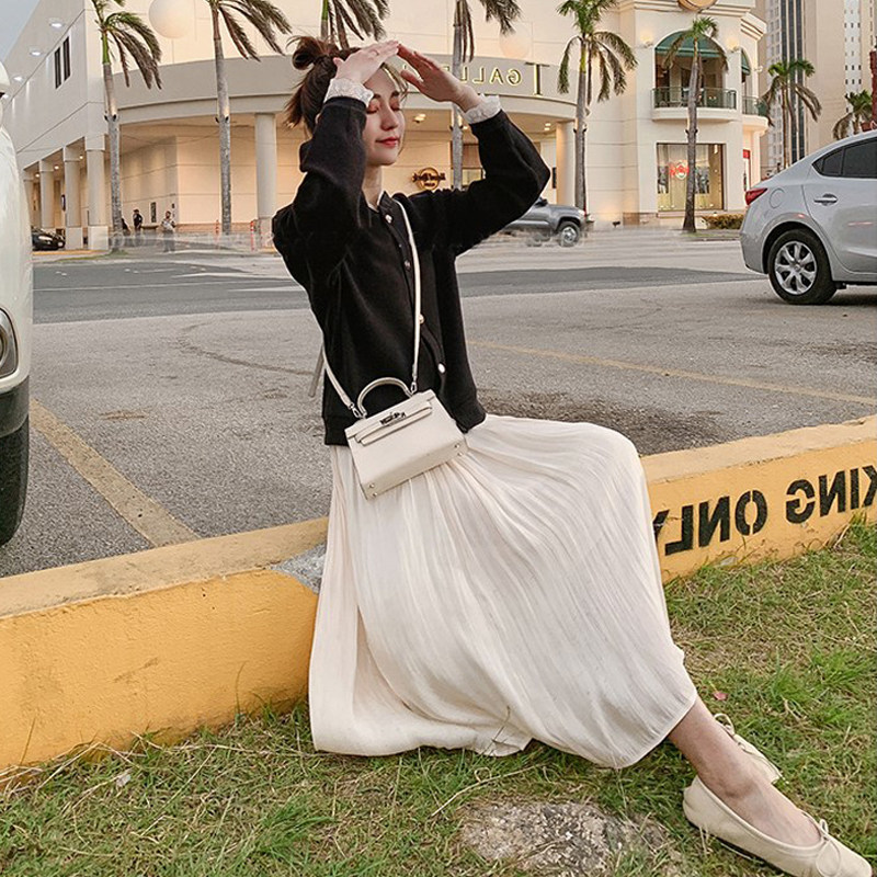 Pregnant woman half-body yarn dresses in spring and autumn season Long a word summer dress thin and boomer fashion loose pendant sensation 100 pleats white