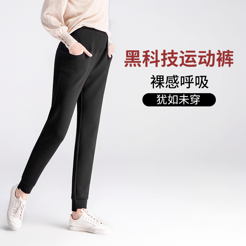 Nordic pregnant women sports pants air layer spring and autumn outer wear large size casual belly trousers loose pants black