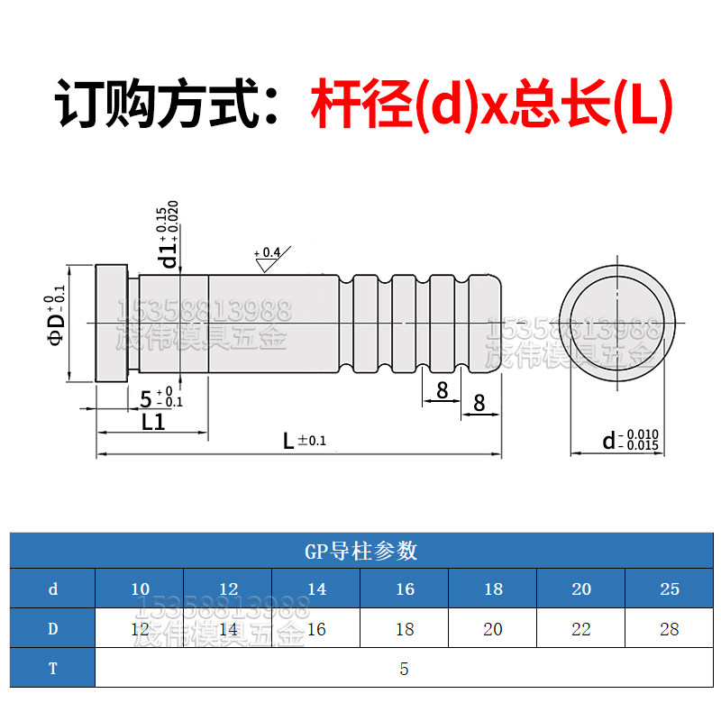 GP precision hardened SUJ2 inner guide column Stamping die accessories Auxiliary shoulder guide column guide sleeve 8 10 12 14