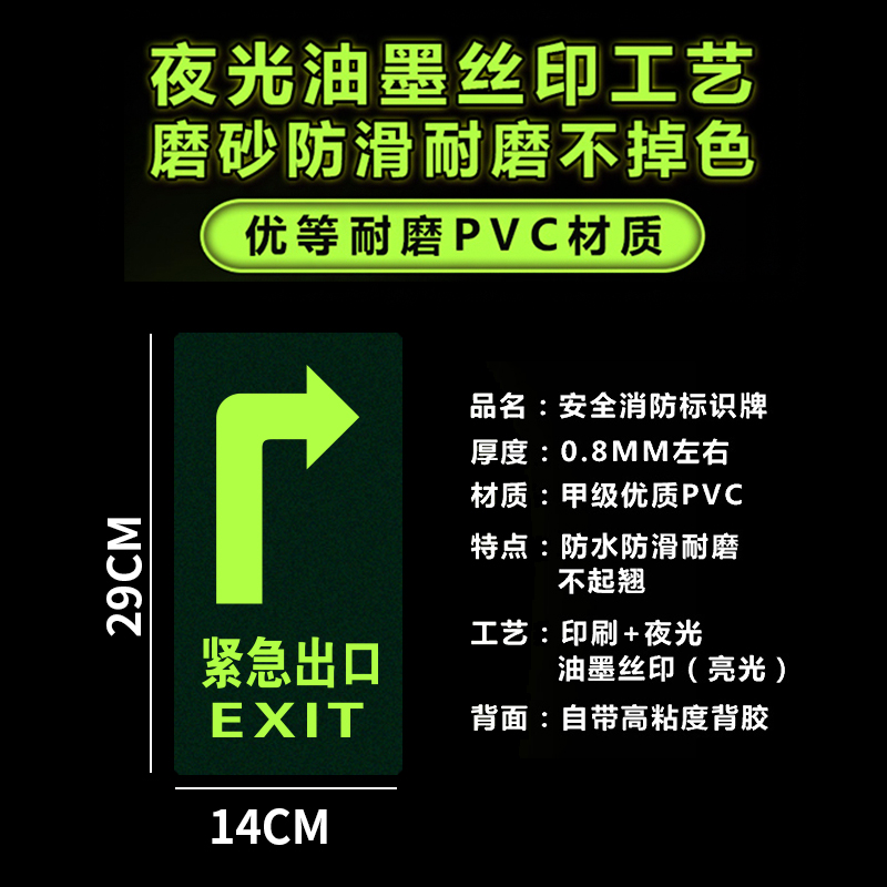 Fire sign signs fluorescent safety exit emergency passage floor stickers luminous stairs wall stickers self-luminous careful steps meet slip warning signs stickers safety evacuation exit signs