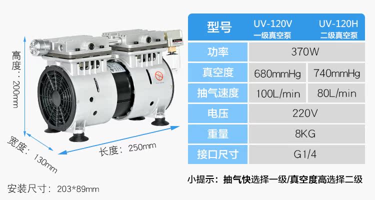 UV-120 oil-free silent vacuum pump 370W industrial small extraction pump 80L min large flow high vacuum