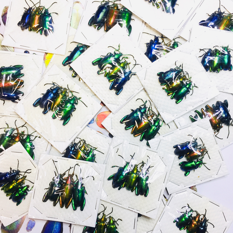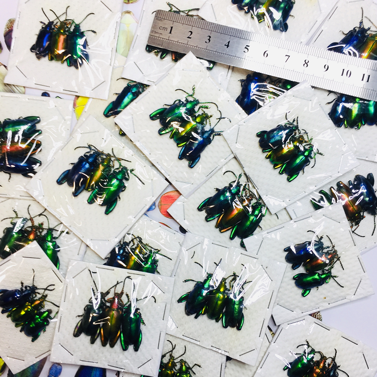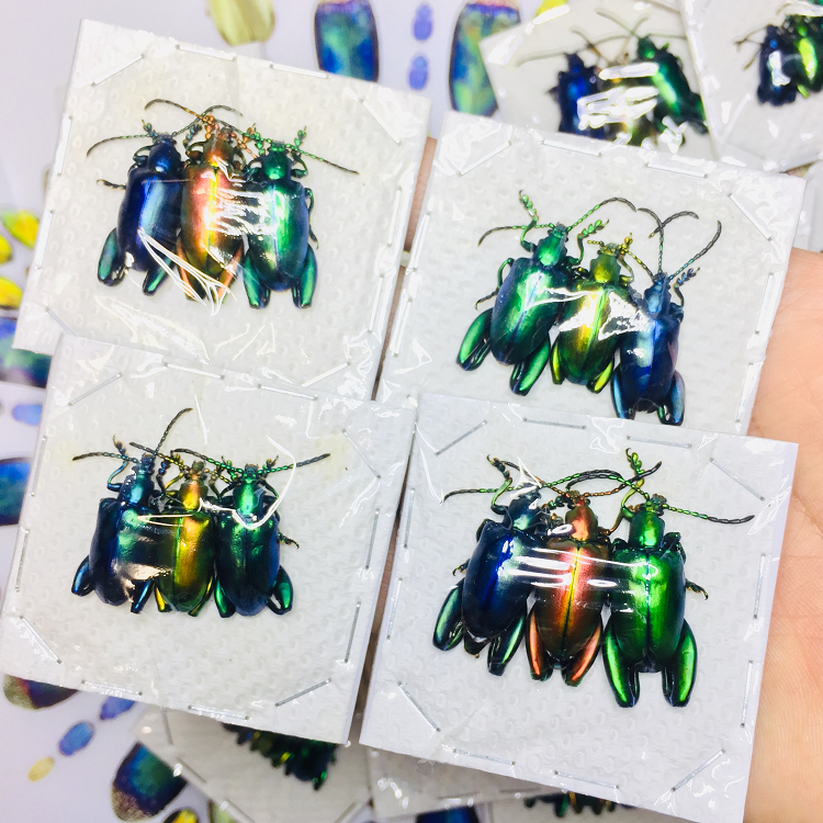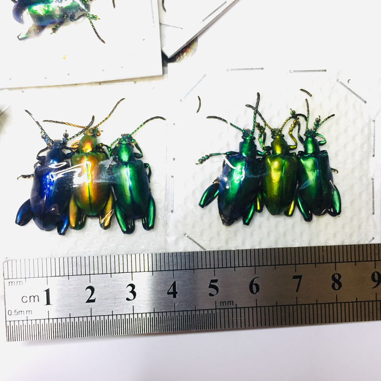 A group of three tricolor tibia specimens Sagra longicollis frog leg golden flower worm Beetle Beetle gidin