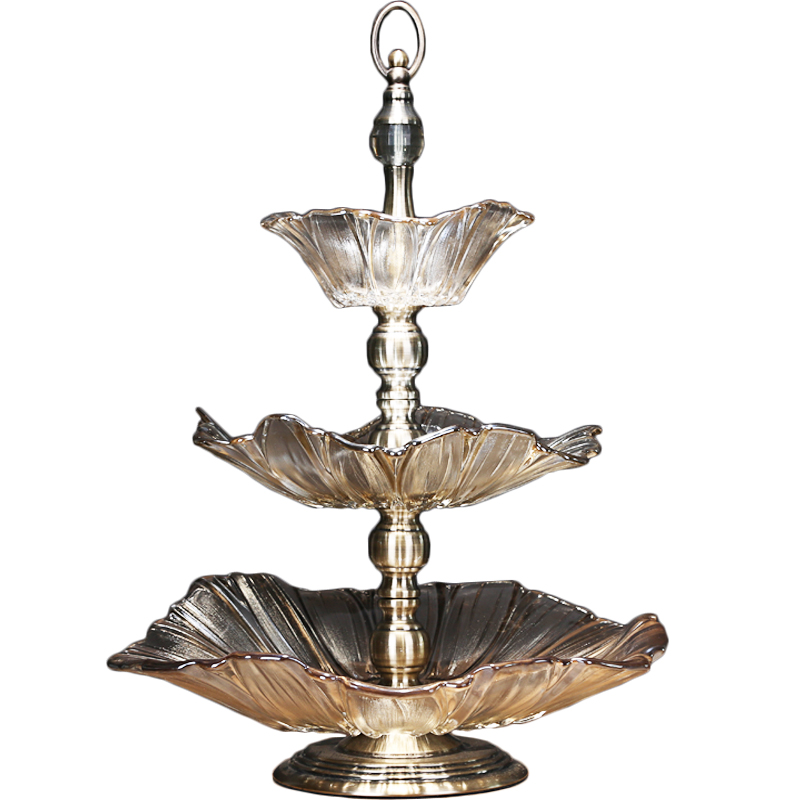 European-style high-grade crystal glass three-layer fruit plate rack American modern home living room tea table snacks double-layer fruit plate