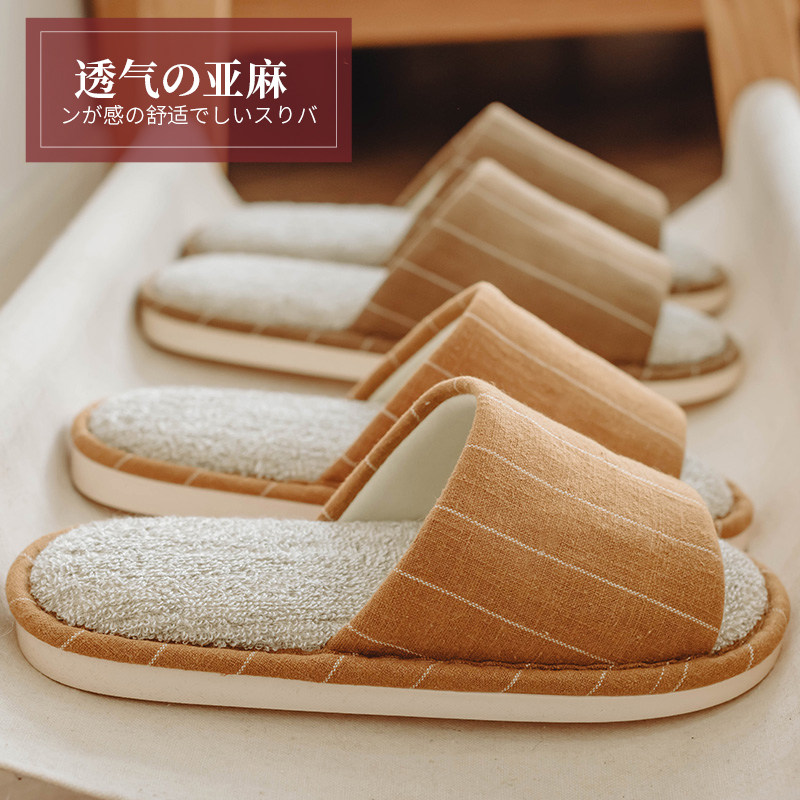 Linen Spring Fall Slippers Home Household Couple Household Household Household Women Four Seasons General Cotton Soft Soft Men