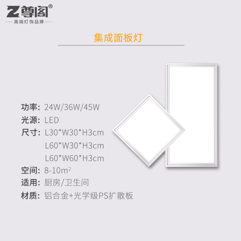 Zun Ge panel light LED integrated recessed lighting kitchen bathroom cloakroom passage square modern home