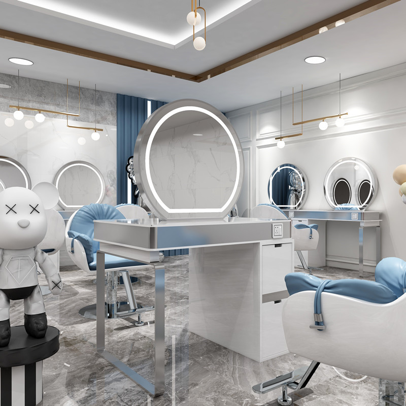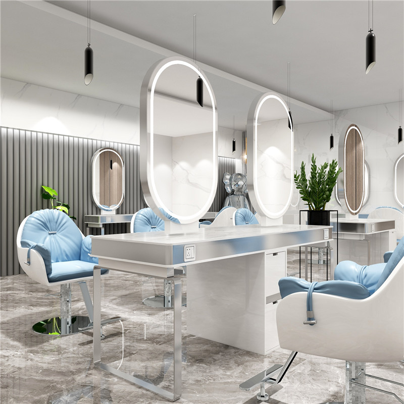Barber shop simple hair lens gallery special marble countertop stainless steel single-sided hair hot mirror