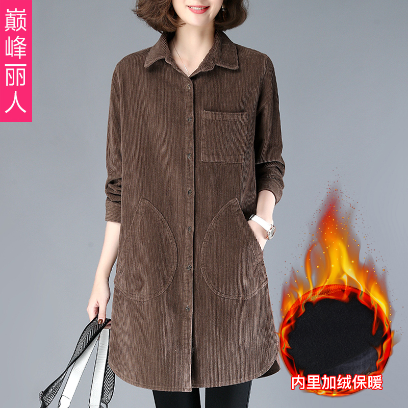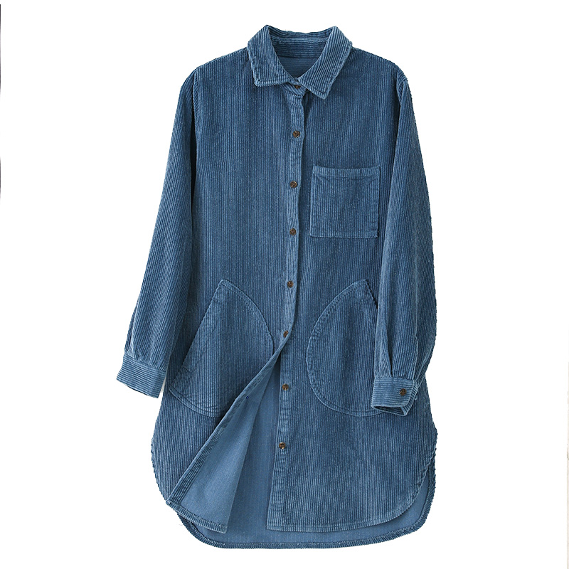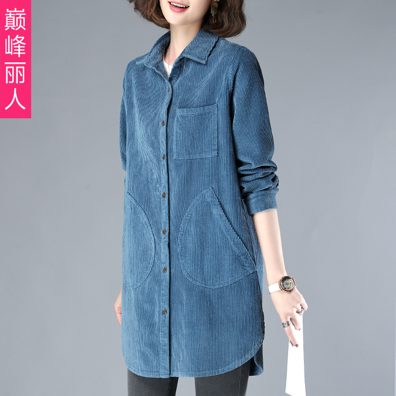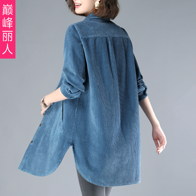 The cordulent shirt woman in the middle and autumn 2023 new vintage harbor shirt outer wear loose coat