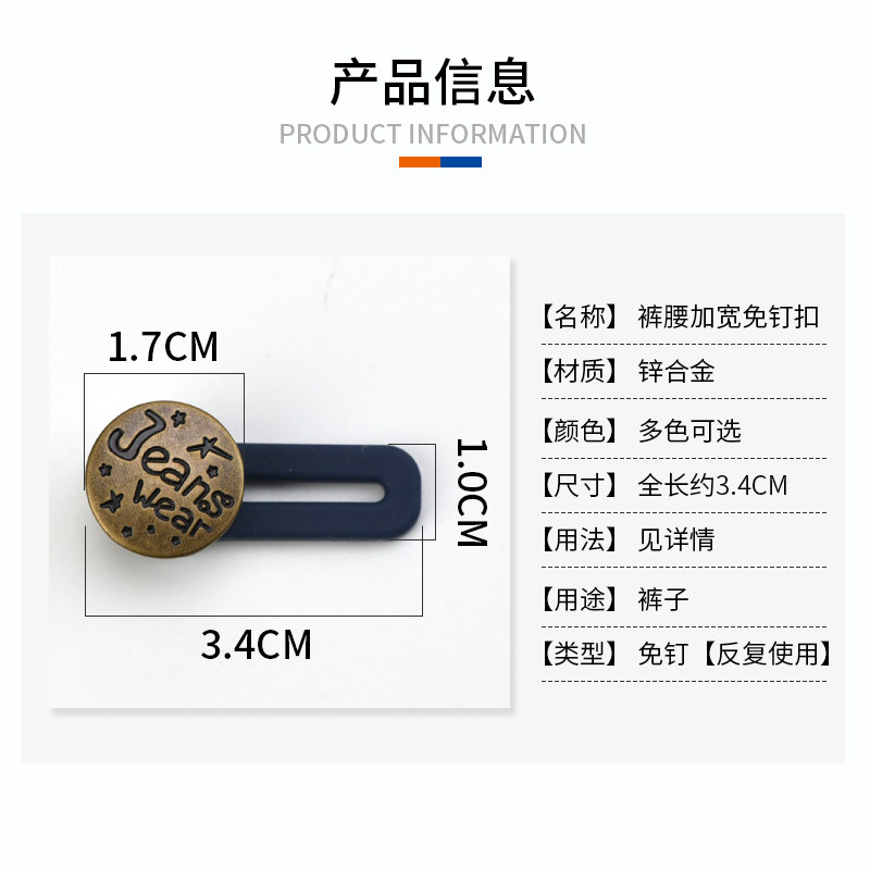 Pants Button adjustable in adjustable size jeans Pants 100 Hitch Rivets Snap metal stitch-free pants waist up to nail