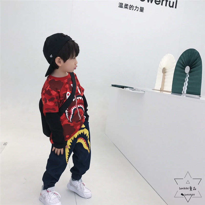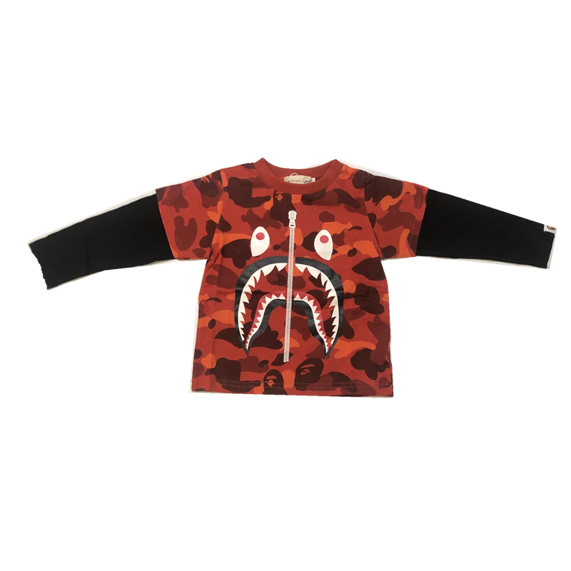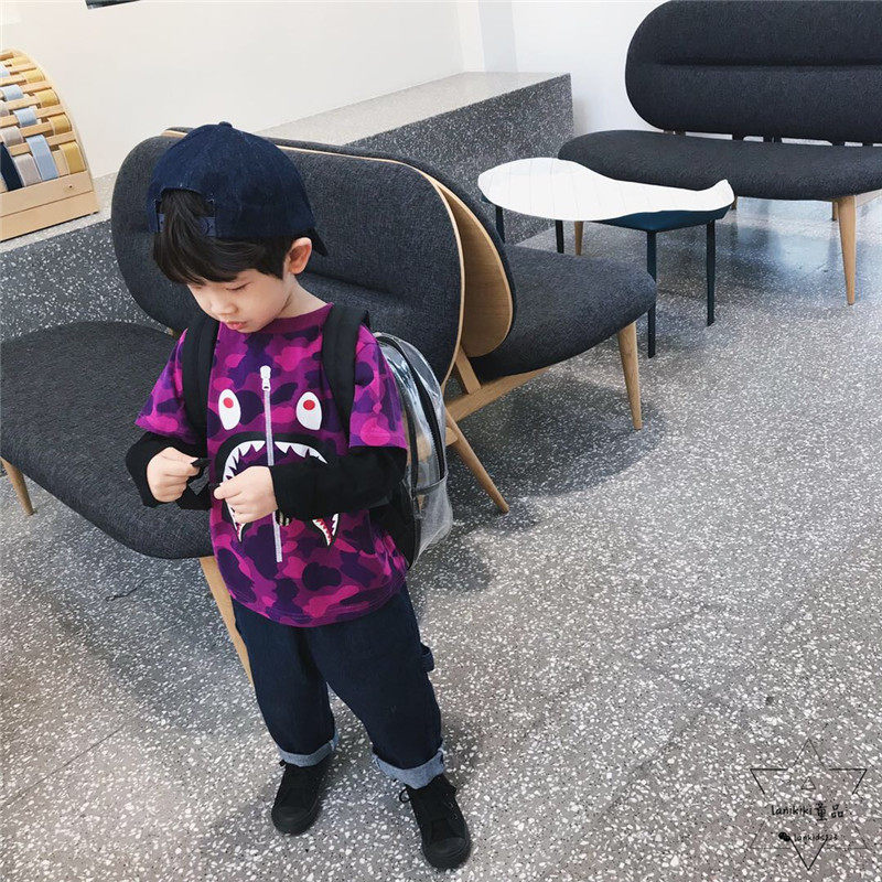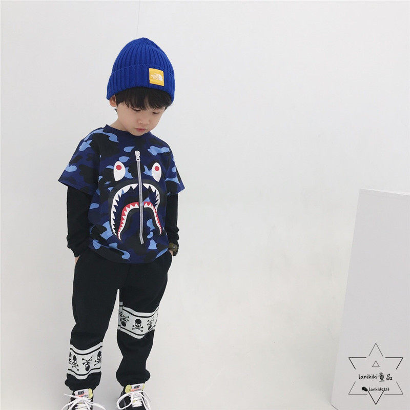 LANIKIki Spring and Autumn Handsome Fry A Street Three-color Shark Classic Fake Two CAMOUFLAN T-SHIRT