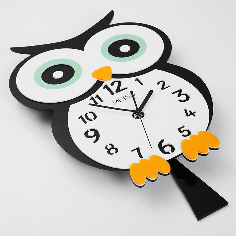 Owl creative cartoon cute hanging bell bedroom muted decoration rocking children's clock living room personality and watch