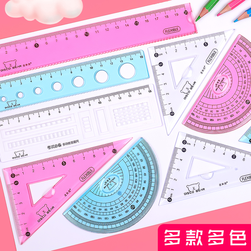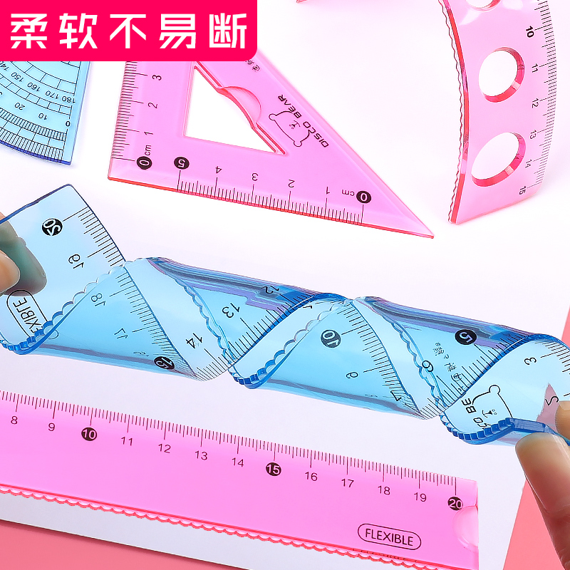 Soft ruler set ruler four-piece set transparent plastic children primary school students use triangular ruler board protractor to measure soft ruler ruler with wavy line multi-functional Japanese and Korean cute stationery set
