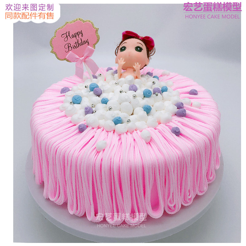 Hongyi new network red creative cartoon popular children's bathing doll cake model simulation custom sample