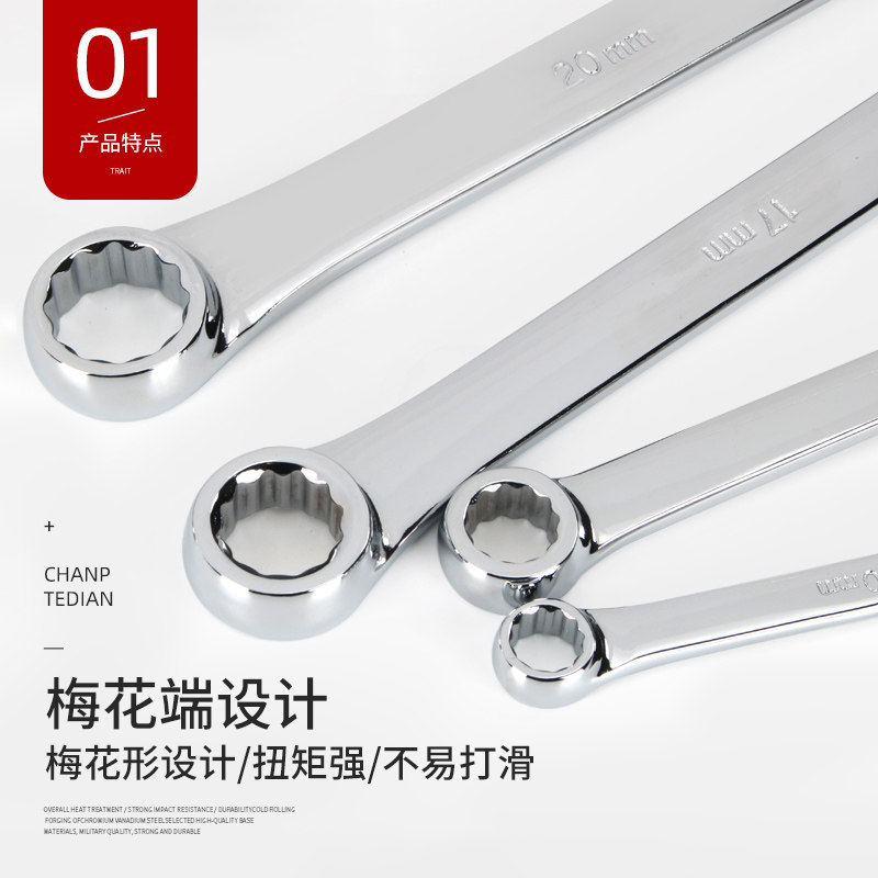Four-wheel positioning dedicated double-headed plum wrench specially lengthened flat plum flower aviation wrench car repair tool
