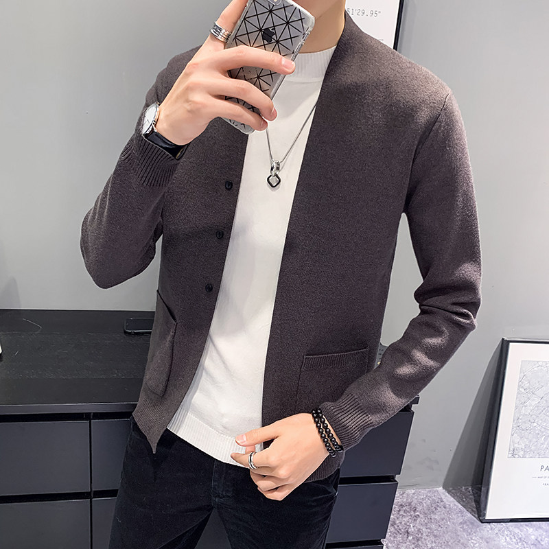 Spring new knitted cardigan men's thin Korean version trend slim sweater jacket men's casual sweater outer wear
