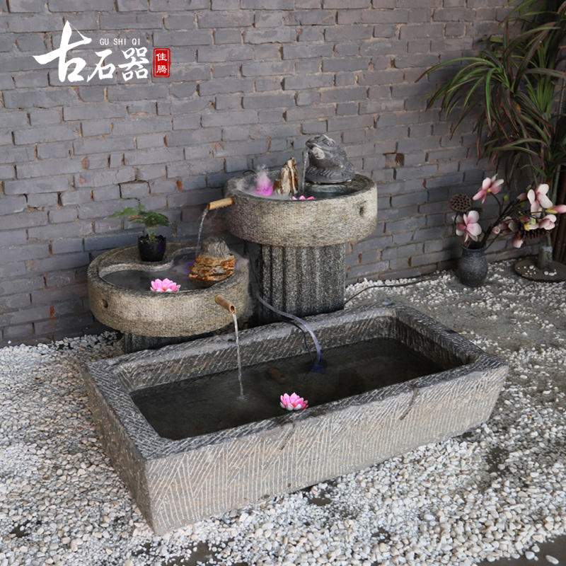 Chinese Courtyard Stone Trough Flowing Water Fountain Landscape Balcony Indoor Fish Pool Building View Garden Fish Tank Yuanbao Basin Swing Piece