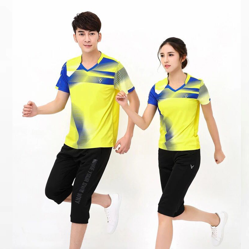 Summer badminton suit suit men and women's round collar jersey training match Speed Dry Sports Clothing Group Purchase Print-Taobao